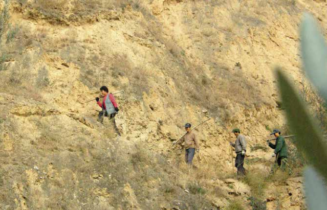 上世紀90年代,李慧(左一)帶領(lǐng)當?shù)厝罕娫诟拭C省隴南市武都區(qū)佛堂溝一帶栽種油橄欖。