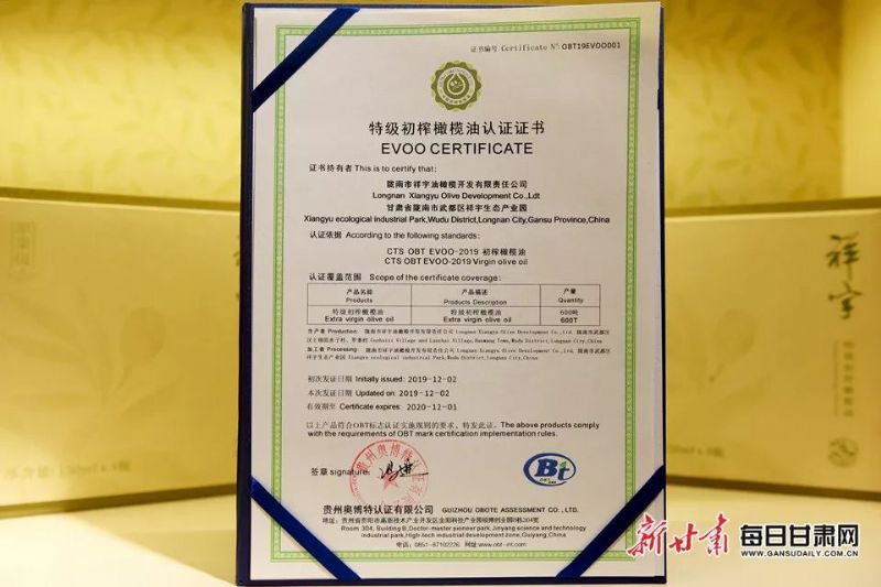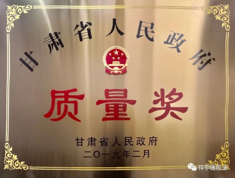 這一年,祥宇橄欖油榮獲甘肅省人民政府質(zhì)量獎(jiǎng)
