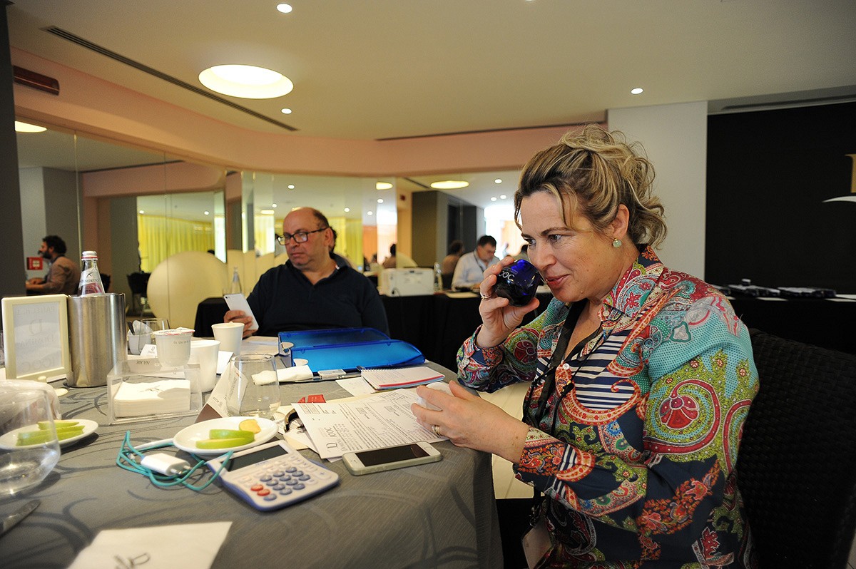 參加品評(píng)環(huán)節(jié)的評(píng)委們以專業(yè)和公正的態(tài)度評(píng)估提交的樣品,參賽產(chǎn)品是由來(lái)自世界各地的專業(yè)品油師,進(jìn)行現(xiàn)場(chǎng)盲品。