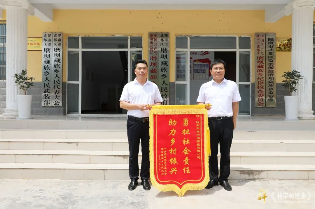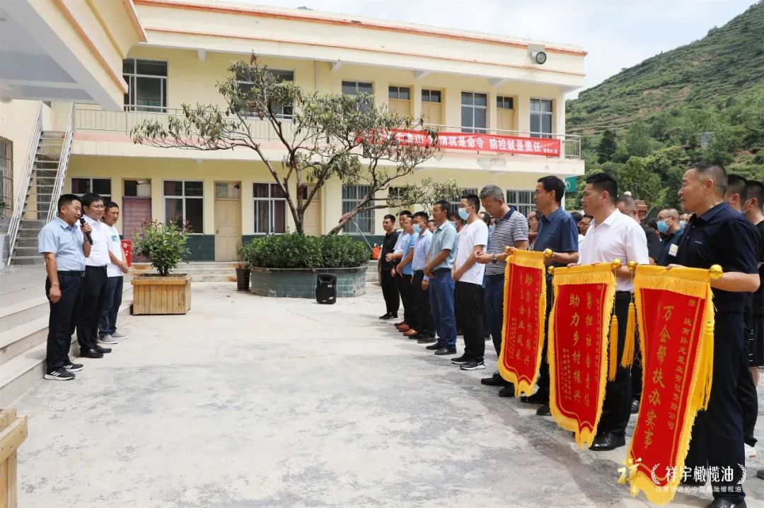 捐贈儀式結(jié)束后磨壩鄉(xiāng)政府向祥宇公司回贈了錦旗以表示感謝