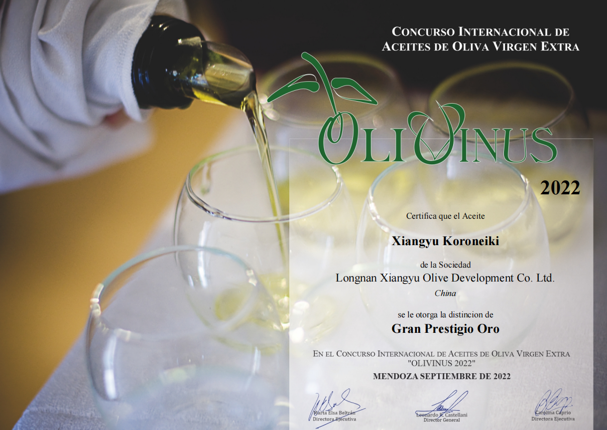 2022 OLIVINUS Xiangyu Koroneiki金獎證書